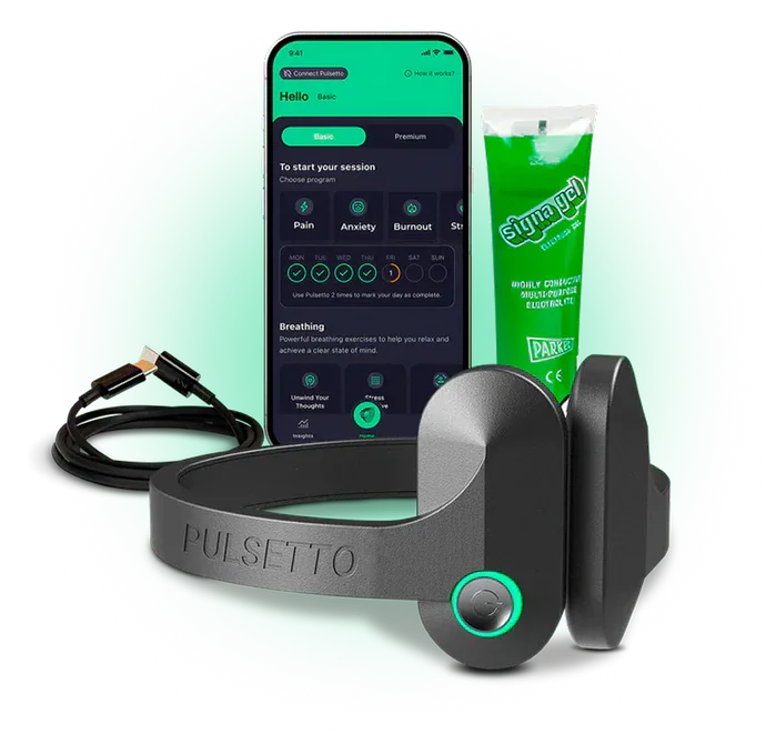 Pulsetto helps you break free. In just a few minutes, it activates your vagus nerve to naturally calm your body and restore balance — no pills, no side effects. The soothing effects last for hours, helping you stay relaxed, focused, and in control all day long.